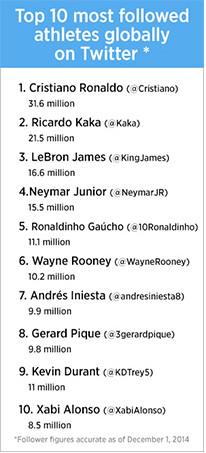 CHRISTIANO RONALDO TOPS LIST OF GLOBAL ATHLETES WITH MOST TWITTER FOLLOWERS